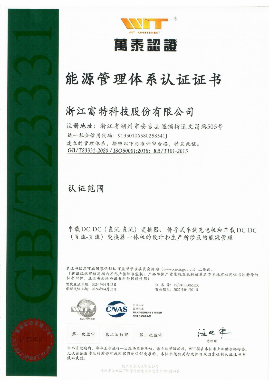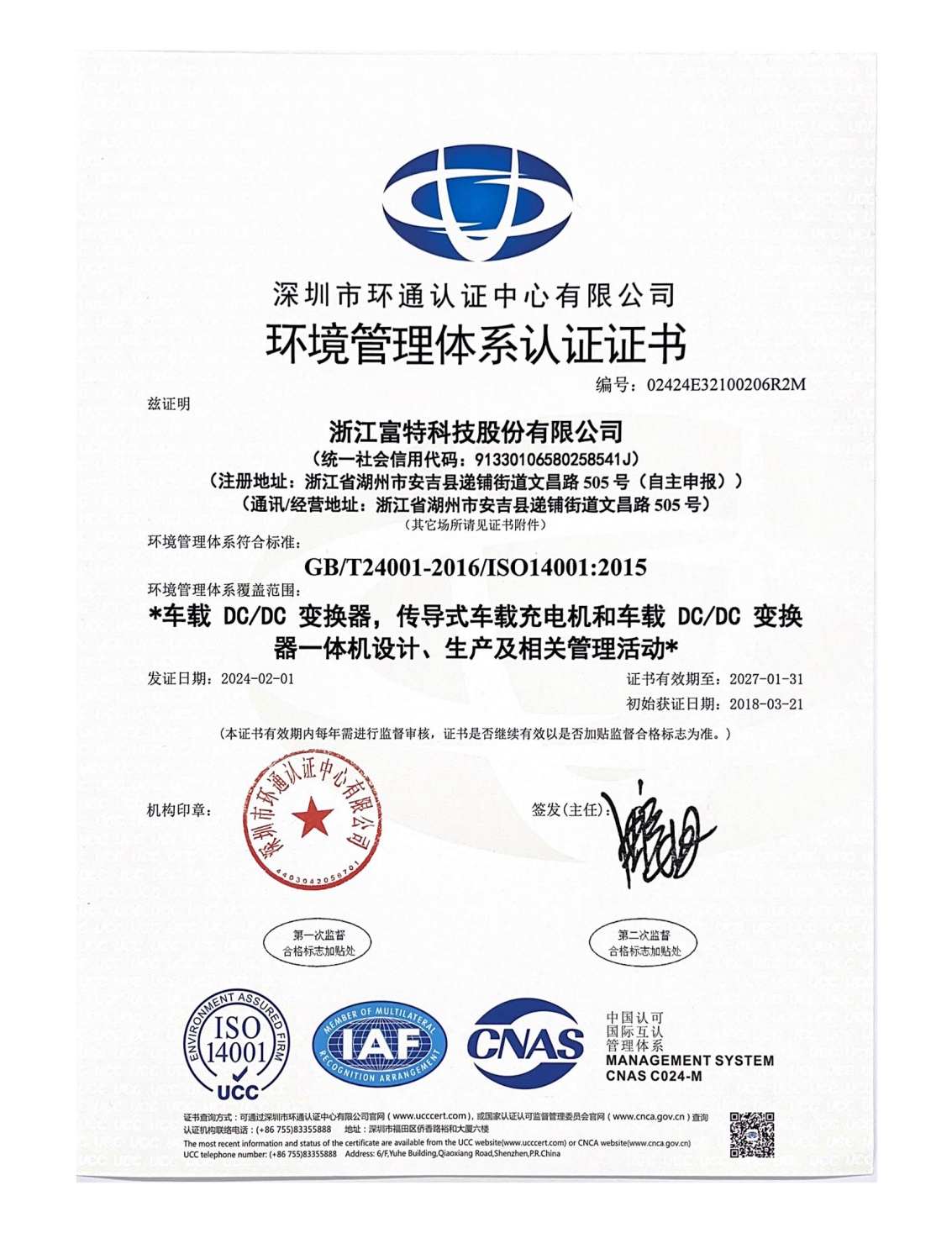 浙江富特科技股份有限公司,成立于2011年8月,生產基地位于湖州市安吉縣,研發中心位于杭州市西湖區、西安市高新區,是一家專注于新能源汽車核心零部件的國家級高新技術企業,是國內新能源汽車車載充電機及車載 DC/DC 轉換器的主要供應商。