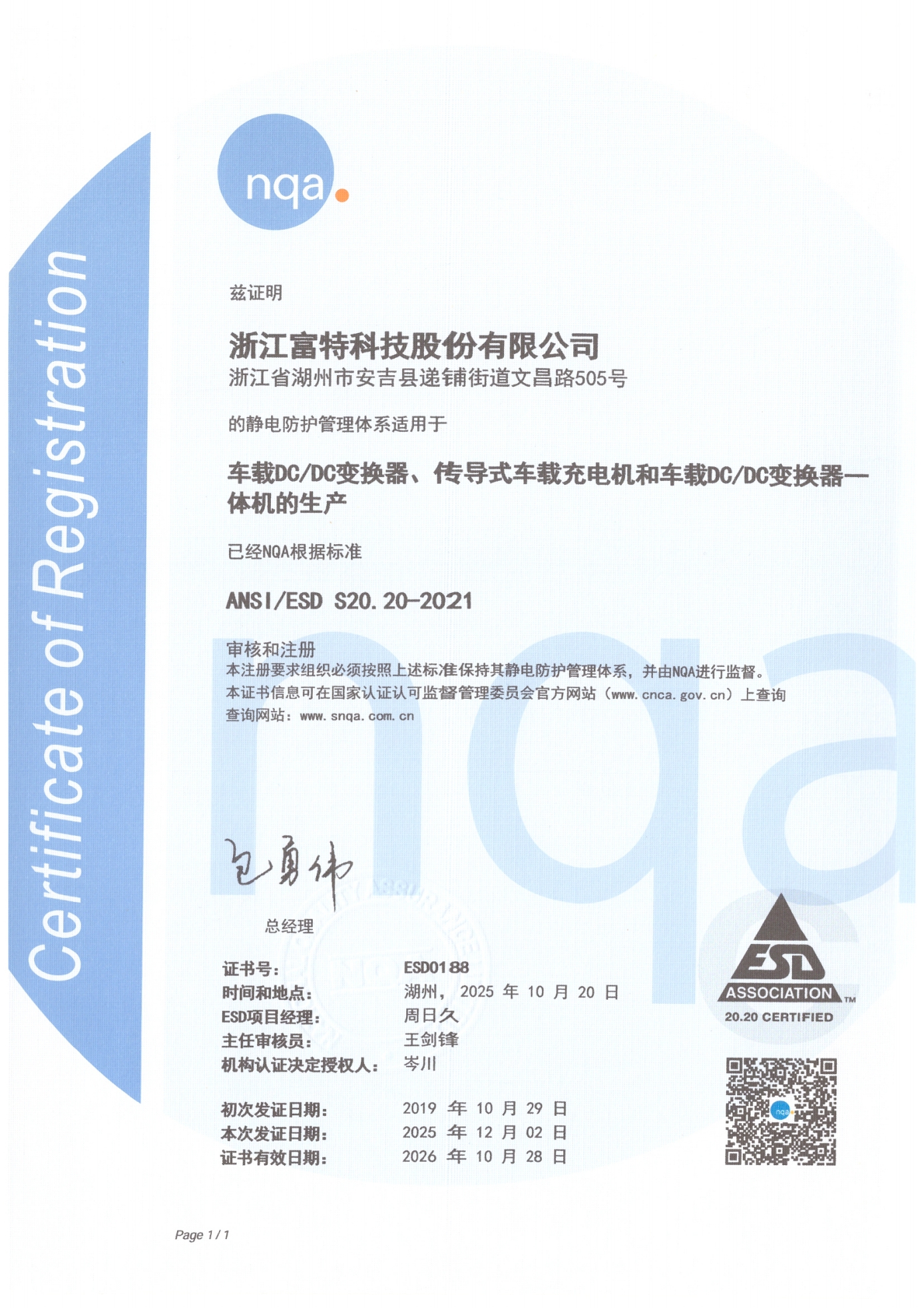 浙江富特科技股份有限公司,成立于2011年8月,生產基地位于湖州市安吉縣,研發中心位于杭州市西湖區、西安市高新區,是一家專注于新能源汽車核心零部件的國家級高新技術企業,是國內新能源汽車車載充電機及車載 DC/DC 轉換器的主要供應商。